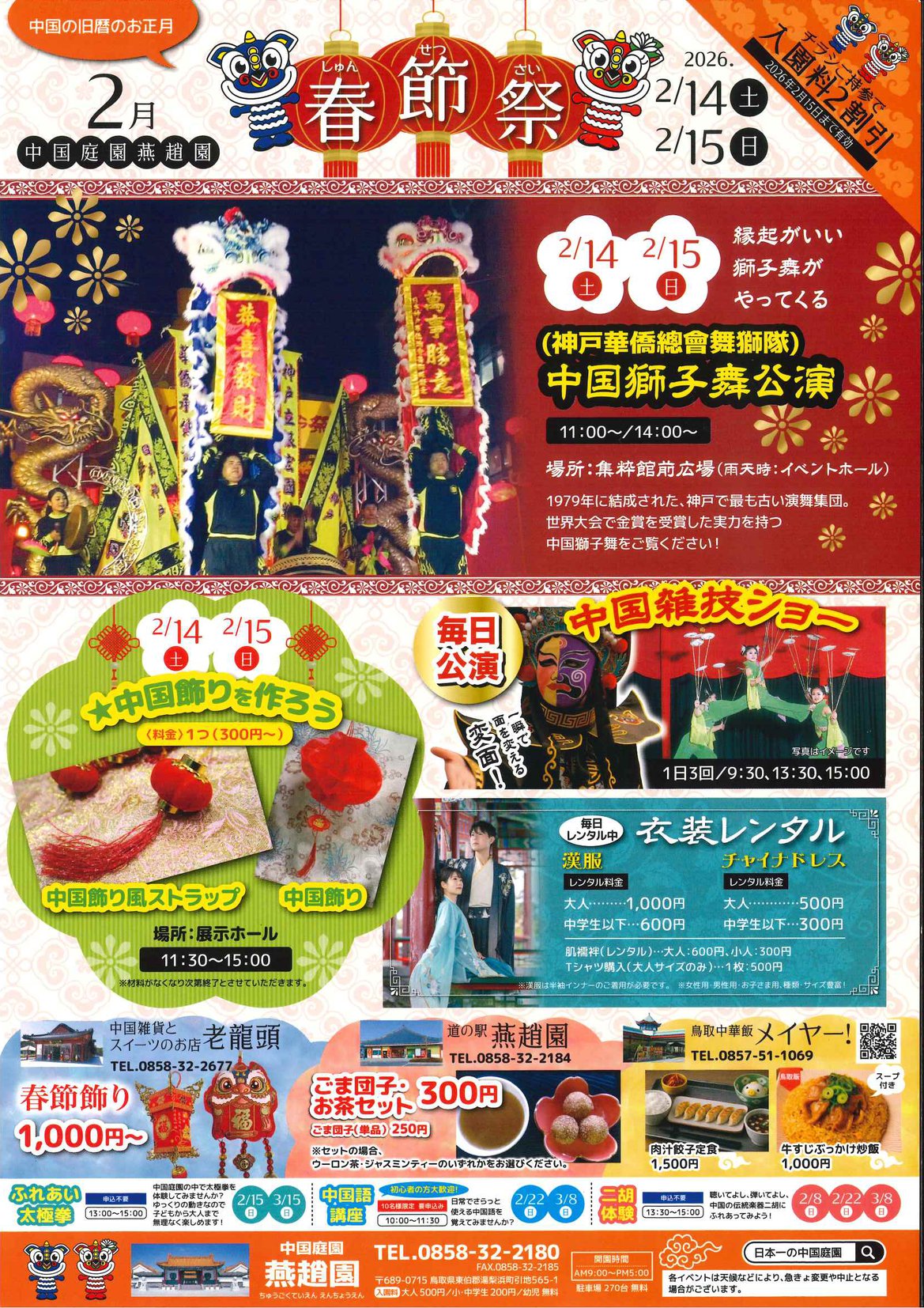 2月14日(土)・15日(日)の2日間は燕趙園の春節祭です。