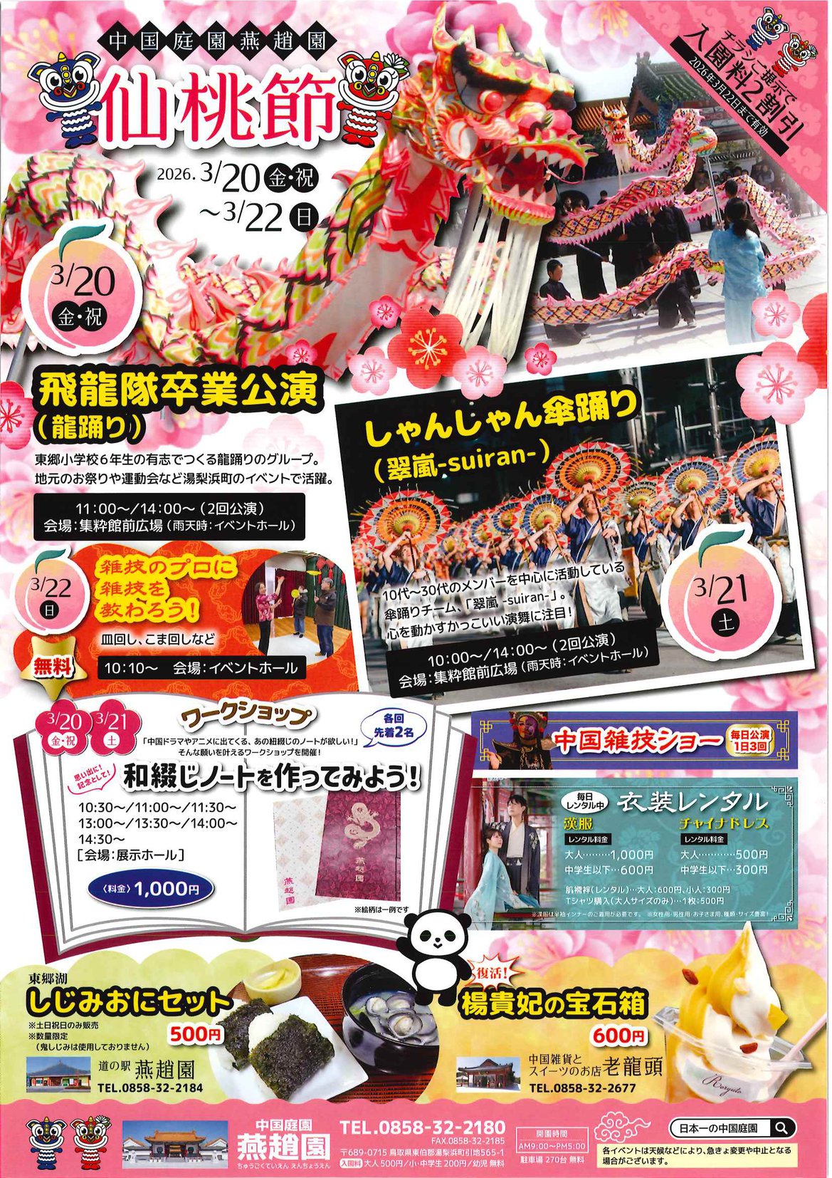 3月20日(金・祝)~3月22日(日)の3日間は燕趙園の仙桃節です。