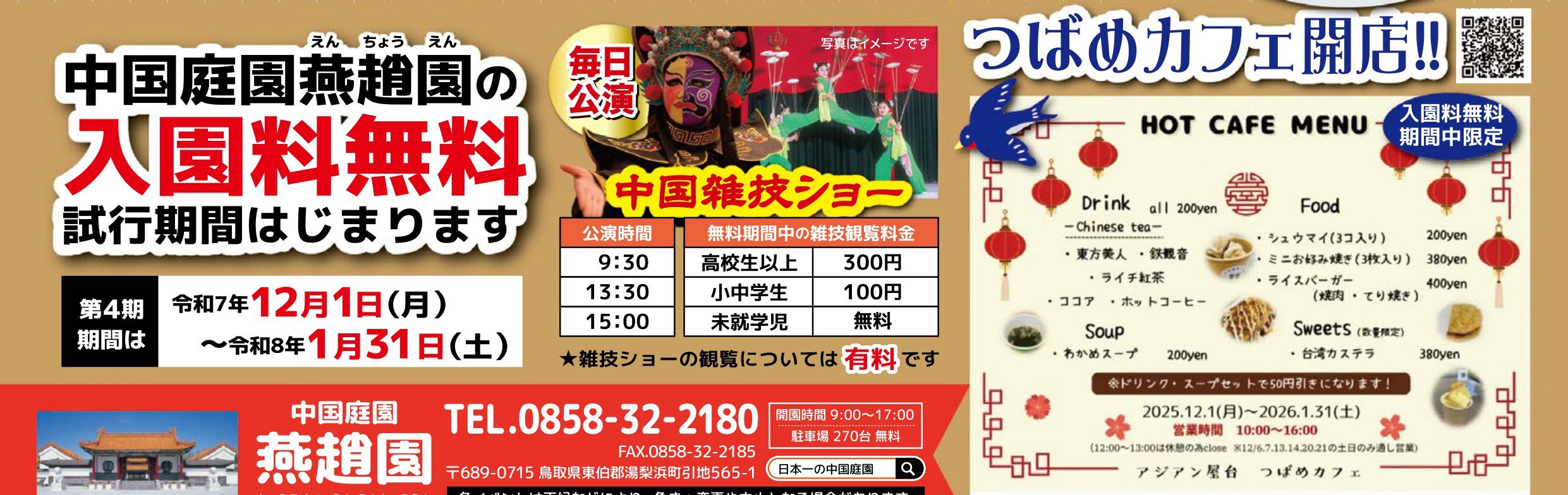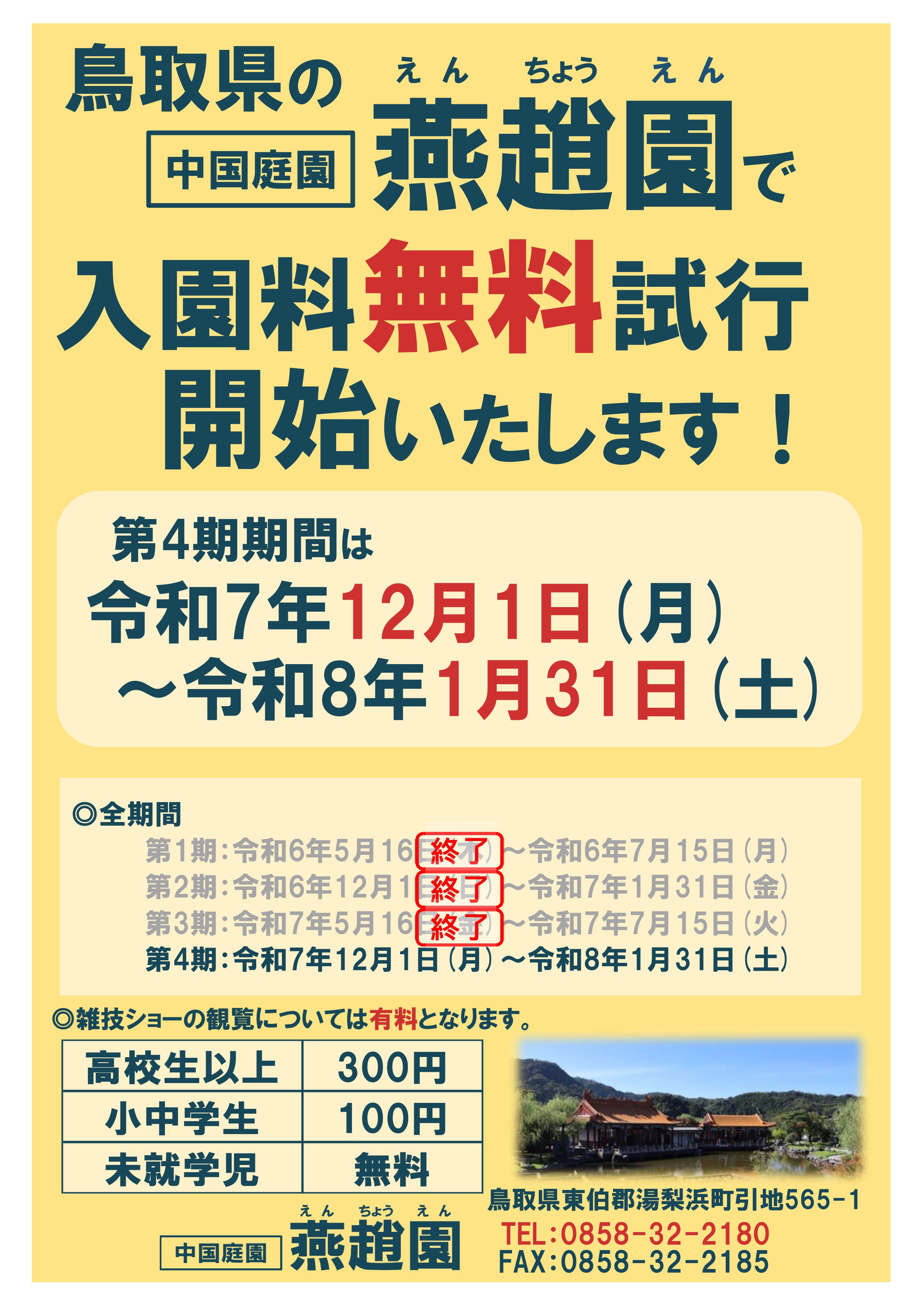 【重要】燕趙園の入園料無料化試行期間のおしらせ